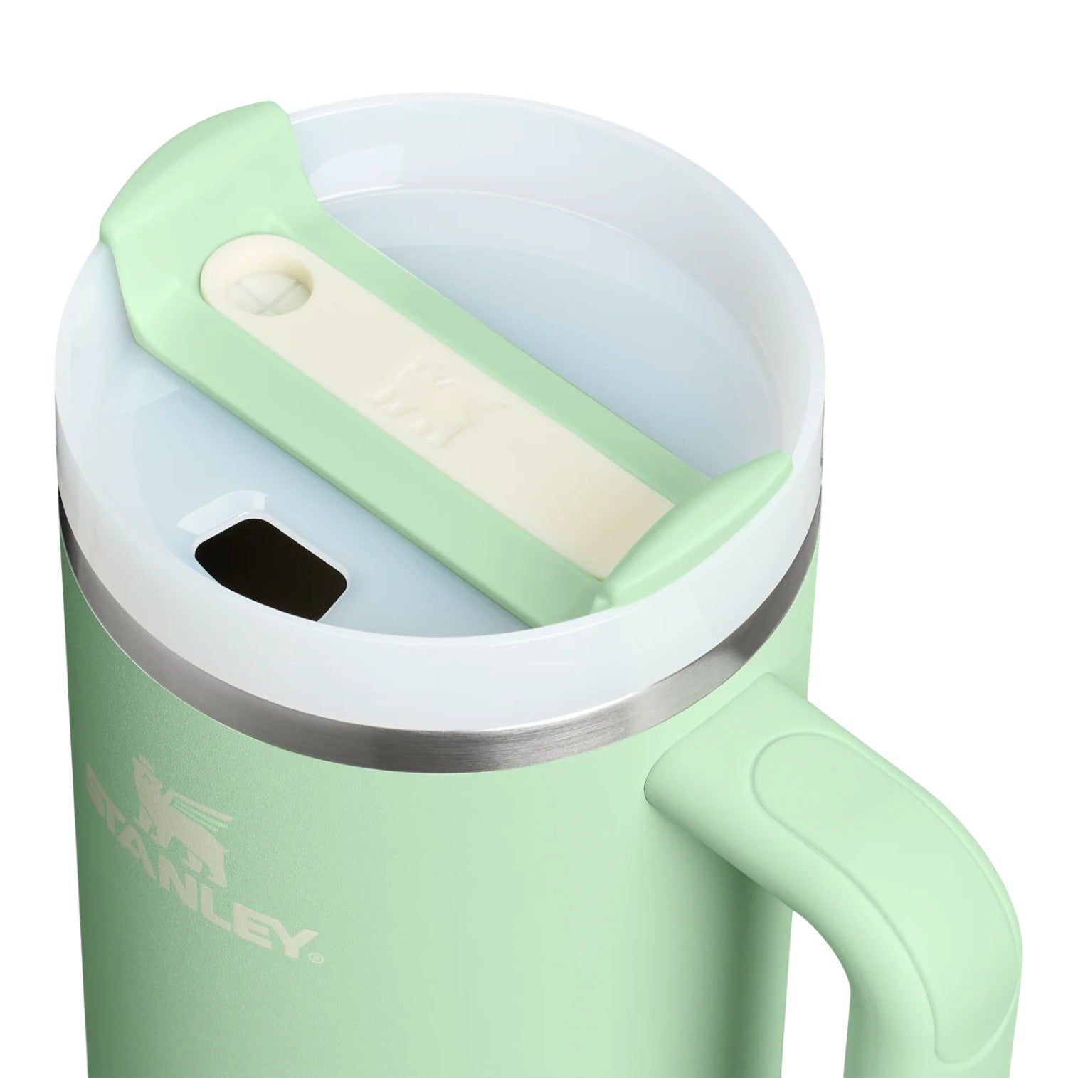 Constructed of 90% recycled stainless steel for sustainable sipping, the Stanley Quencher H2.0 Flowstate™ Tumbler 40OZ helps you reach your hydration goals with fewer refills. Working, workouts, road trips — you’ll want this Stanley cup always by your side. Thanks to Stanley’s vacuum insulation, your water will stay cold for 11 hours, 2 days when iced. The advanced FlowState™ lid features a rotating cover with three positions: a straw opening designed to resist splashes while holding the reusable straw in place, a drink opening, and a full-cover top. The ergonomic handle includes comfort-grip inserts for easy carrying, and the narrow base fits just about any car cup holder. Lastly, every piece of this stainless steel water bottle is dishwasher safe. Don't miss out on the hydration must-have you never knew you needed. Available in 4 bold, eye-catching colours: Rose Quartz, Chambray, Eucalyptus and Charcoal.